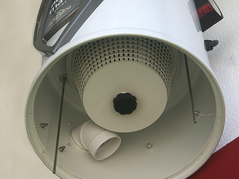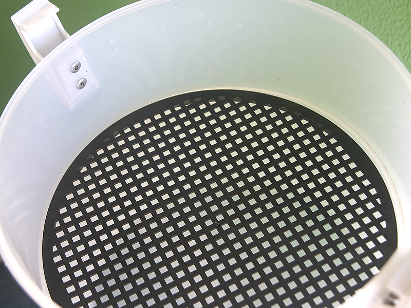 No depósito está instalada uma rede de proteção para evitar que fragmentos de tamanho maior sejam despejados para a rede de esgotos e possam criar um entupimento, e também para evitar a descarga de alguma peça que porventura foi aspirada quando não devia ter sido.
